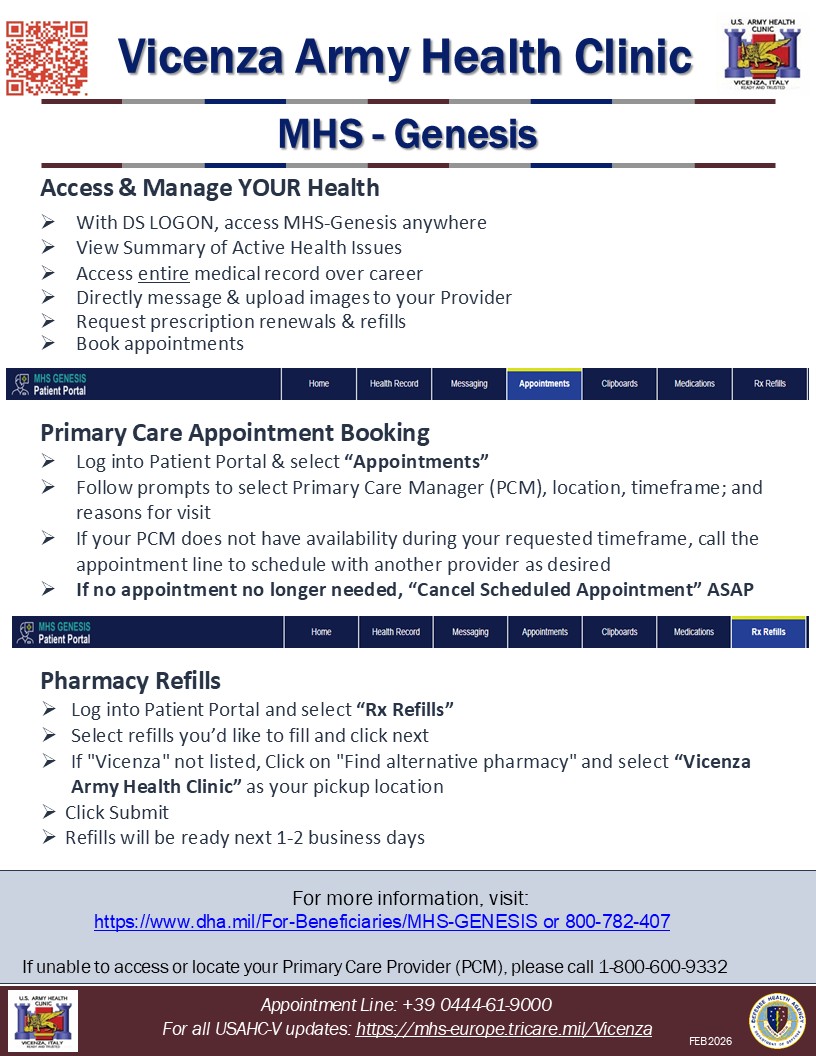 Along with the new EHR, the MHS GENESIS Patient Portal is a secure website available 24/7 that gives you access to your health information. Through the MHS GENESIS Patient Portal, you can: