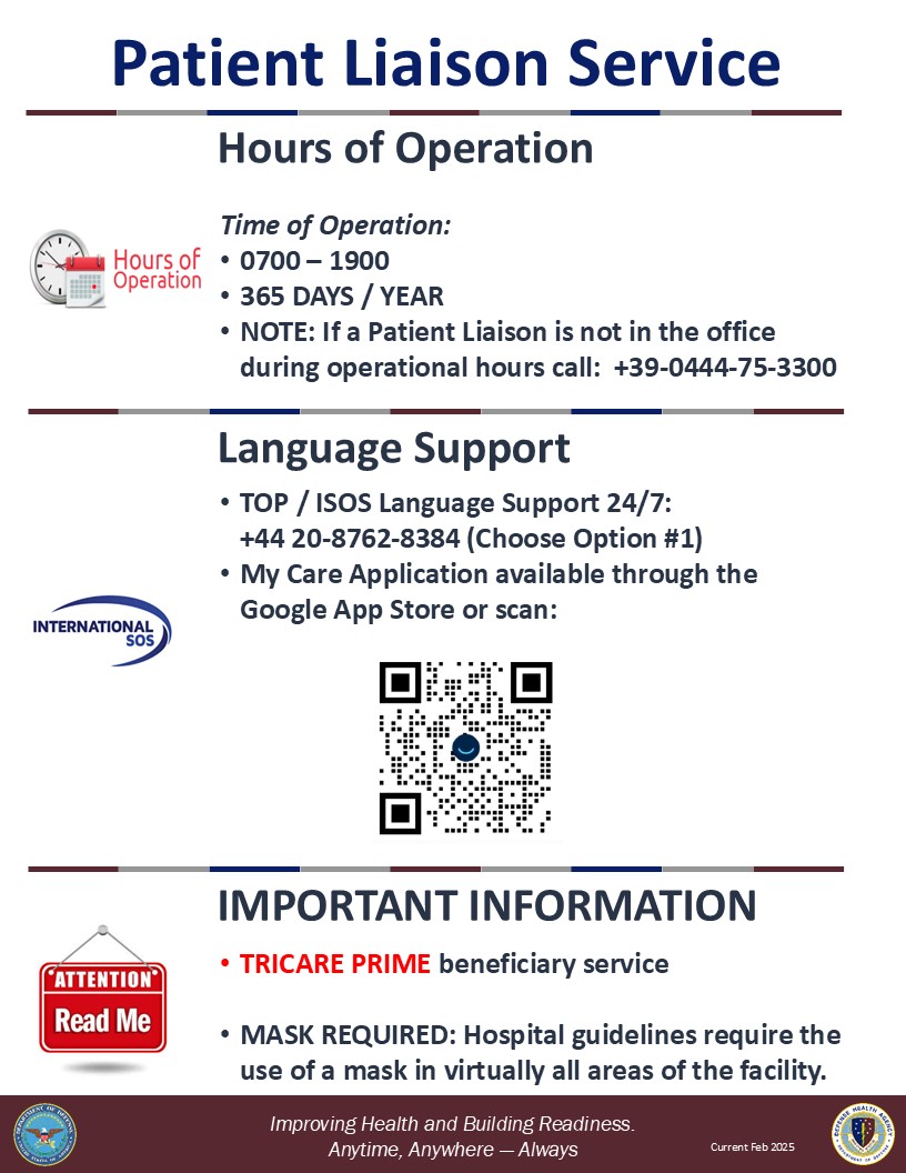 OB-GYN CLINIC: This clinic is a contracted out medical facility, which supports the Vicenza Military Community. The Patient Liaison staff does not provide translation support for this English-speaking Service.